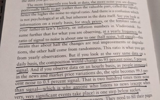 - “Much of what other people know isn’t worth knowing.” Taleb talks about reading more old books than new books. If a book’s been in print for 200 years it likely contains some timeless wisdom, compared to whatever is currently at the top of bestseller list.