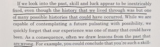 We draw lessons from the past but some things happened simply due to chance. The need to connect cause and effect is ingrained in our minds and we tend to forget about luck once we know how things turned out.