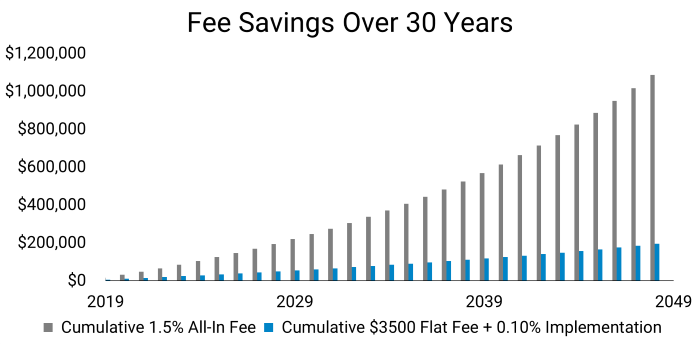 - One investor pays an advisor an all-in 1.5% per year for management and implementation.