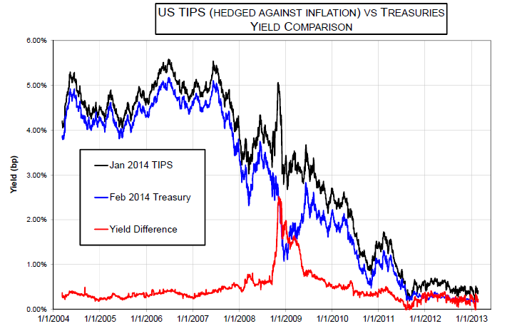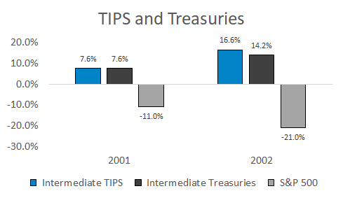 For example, TIPS and Treasuries closely tracked each other during the early 2000s recession: