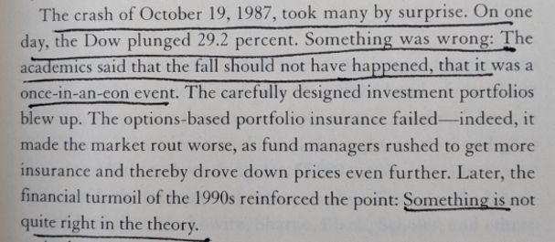 - Greater knowledge of danger permits greater safety. For centuries, shipbuilders have put care into the design of their hulls and sails. They know that the sea is typically calm but hurricanes do sometimes happen. Shipbuilders design in case of these storms – despite the construction appearing overkill for the typical day. Mandelbrot’s discovery that prices are not normally distributed means that markets are riskier than previously thought. Most investors are like shipbuilders who ignore extreme weather and optimize a portfolio for the 95% of the time the market is normal.