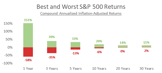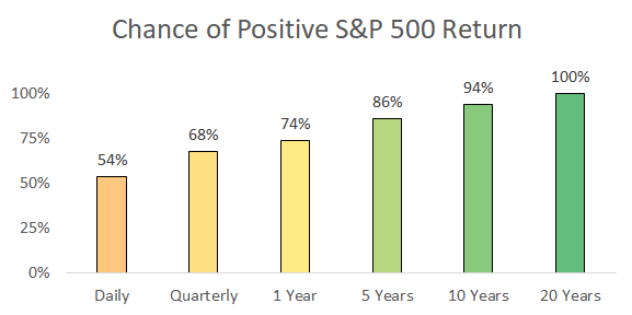 While the probability of losing money typically decreases the longer you invest…