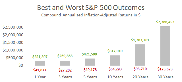 The bar to the far right shows that there’s been more than a $2 million difference in historical outcomes from the exact same investment.