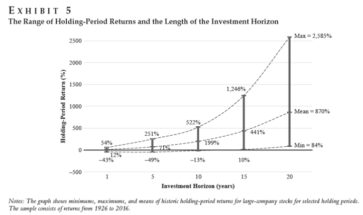 - The dollar range of return outcomes widens over time.